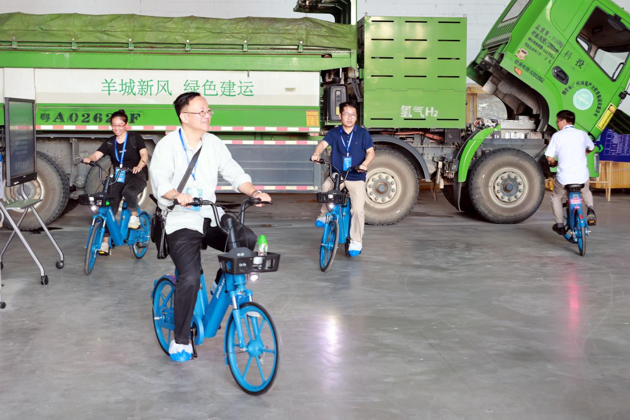 為向專家、教授們展示氫能產地化落地應用的情況,特在集團番禺新基地設置了展示區(qū),重點展示了氫能源自行車、氫能燃料電池貨車,以及花安堂番禺新基地未來承載的功能。專家、教授們對氫能產地化落地應用成果饒有興趣,體驗騎行了氫能源自行車。